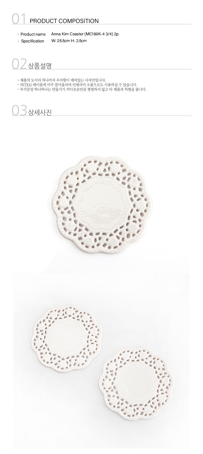 Anna Kim ( MC 160 K ) Coaster 4 3/4 Inch 2 Pcs (White)
